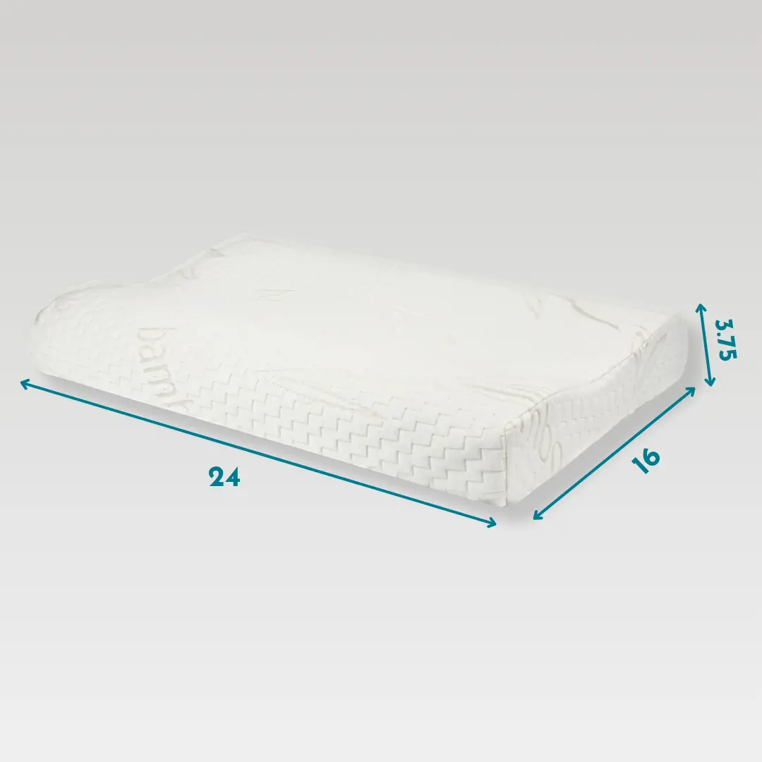 The contour wave shape memory foam neck pillow is designed with two heights for side and back sleepers. It supports the head as well as the neck. Adjustable Pillow for Sleeping, Ergonomic Cervical Pillows Neck Pain, Support Back, Anti-Allergy, Pain Relief. An orthopedic pillow that perfectly molds around the head and neck and gives optimum support. Prevents neck strain. Our memory foam pillow gives you a luxurious feel. away. It ensures that your neck and spine are perfectly supported for relaxed, restful sleep. The fabric cover is breathable, Super Soft, Antimicrobial, and Antibacterial. Reduces pressure on the neck and spine by providing undisturbed support so that your head doesn’t sink in too much like ordinary pillows. The “viscoelastic” quality helps in giving comfortable sleep with memory foam. It creates the shape of your body. When you walk up from the bed, the foam dissolves back to the original.