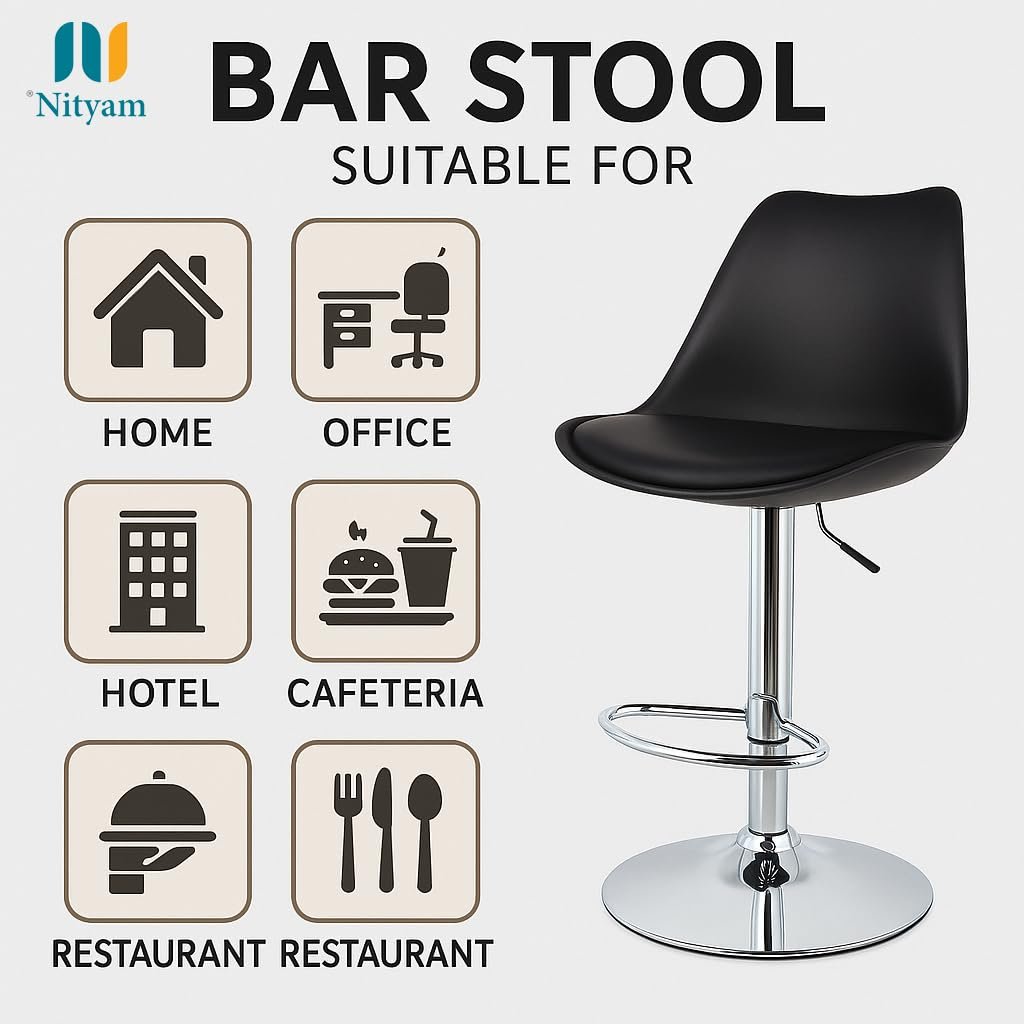 - ✅ MODERN STYLE: Sleek contemporary design with chrome accents and black upholstery complements modern kitchen and bar décor