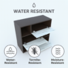 - ✅ Primary Material: High grade Eurpoean standard E2 engineered wood – Particle board with pre-laminate