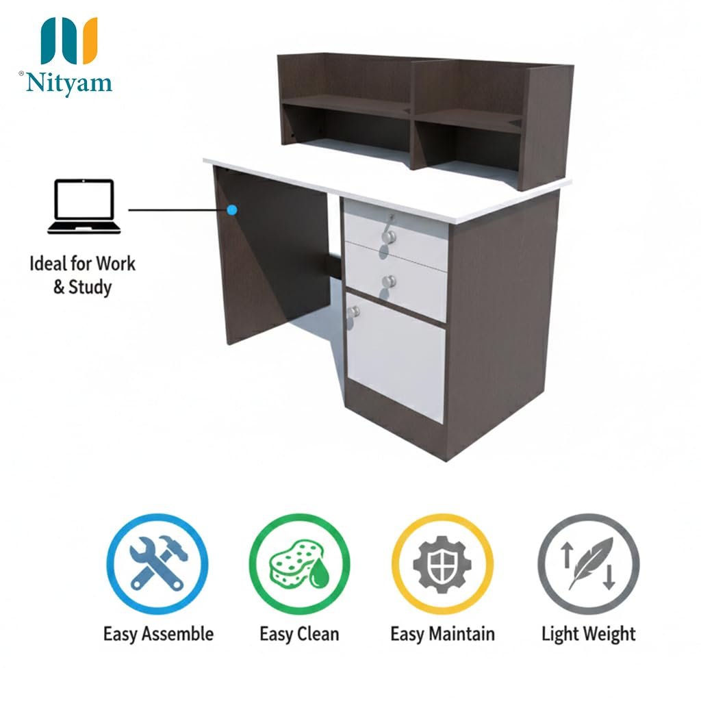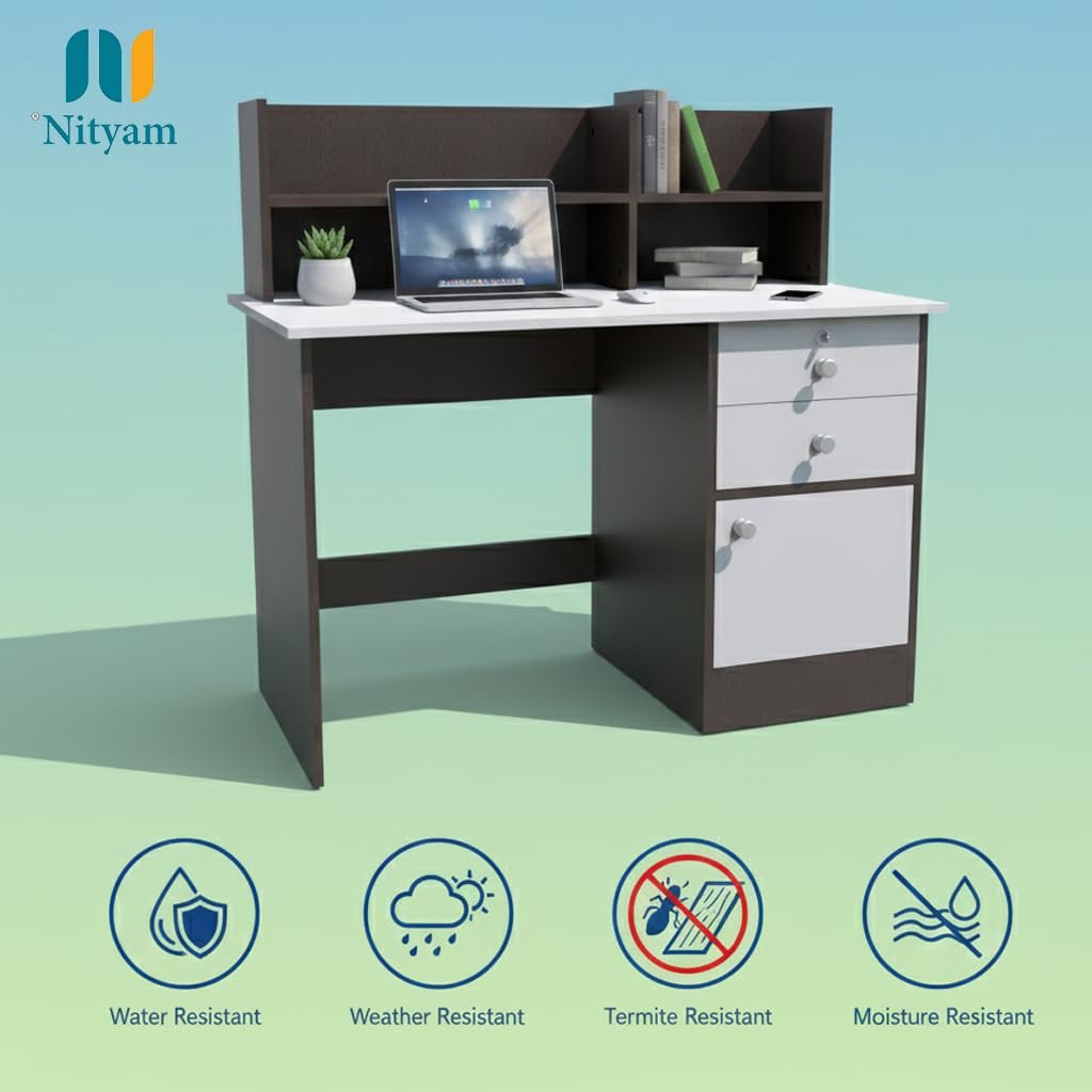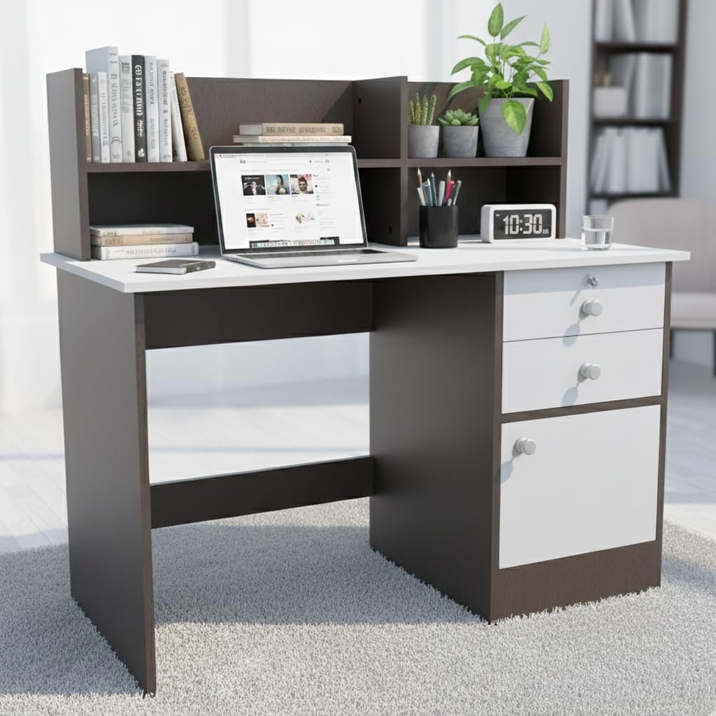 The Nityam Multipurpose Computer Study Table is the ultimate workspace solution for your home or office. This versatile desk seamlessly transforms to meet your daily needs—whether you’re working on your laptop, studying for exams, writing reports, or enjoying a reading session. With its generous 120 cm wide surface, you’ll have ample space to spread out your work materials, position your computer, and keep essentials within arm’s reach. The integrated storage drawer and bookshelf help you maintain an organised workspace by providing dedicated spots for stationery, documents, books, and decorative items. The elegant two-tone brown and white finish adds a contemporary touch that complements various interior styles. Built with practical dimensions of 120x60x114 cm, this desk fits comfortably in most rooms without overwhelming your space. The convenient drawer storage keeps clutter at bay, whilst the upper bookshelf (68x41x33 cm) displays your favourite books, plants, or work essentials. Whether you’re setting up a home office, creating a study corner, or need a dedicated workspace for gaming, this multipurpose desk adapts to your lifestyle and helps you stay productive throughout the day.