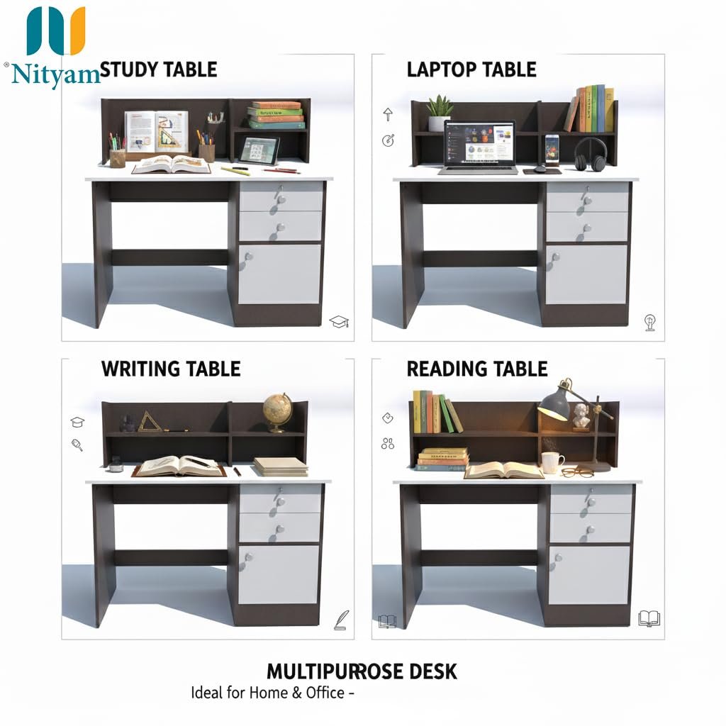 - MULTIPURPOSE DESIGN: Versatile desk suitable for use as a study table, laptop table, writing table, reading table, or gaming table, ideal for home and office environments